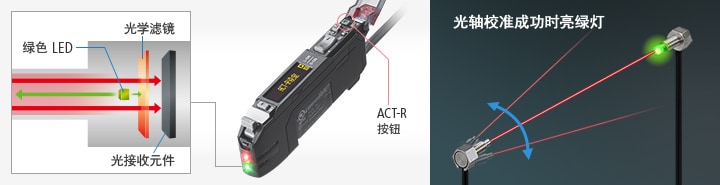 传感器的ON/OFF 与光纤的指示灯联动,能根据传感器的状态发出绿光,状态的可视化成为可能。